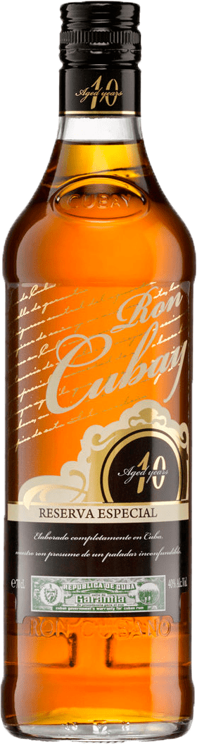 10 jaar, gerijpt in speciaal geselecteerde eikenhouten vaten. Reserva Especial is het meest vooraanstaande lid van de Cubay-familie. Het voortreffelijke en evenwichtige boeket wordt versterkt door de zachte geur van hout. Deze rum heeft een alcoholpercentage van 40%.